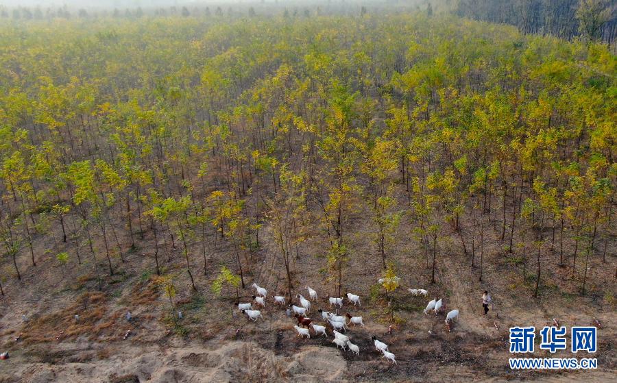 這是11月6日在河南省商丘市民權(quán)縣拍攝的民權(quán)林場(無人機(jī)照片)。新華社記者 郝源 攝