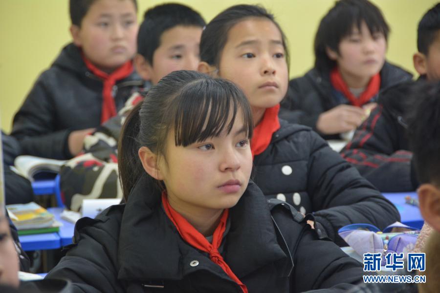12月1日,在廣河縣三甲集鎮(zhèn)火炬小學,東鄉(xiāng)族女孩馬梅(前排)正在教室內(nèi)聽講。新華社記者顏之宏攝