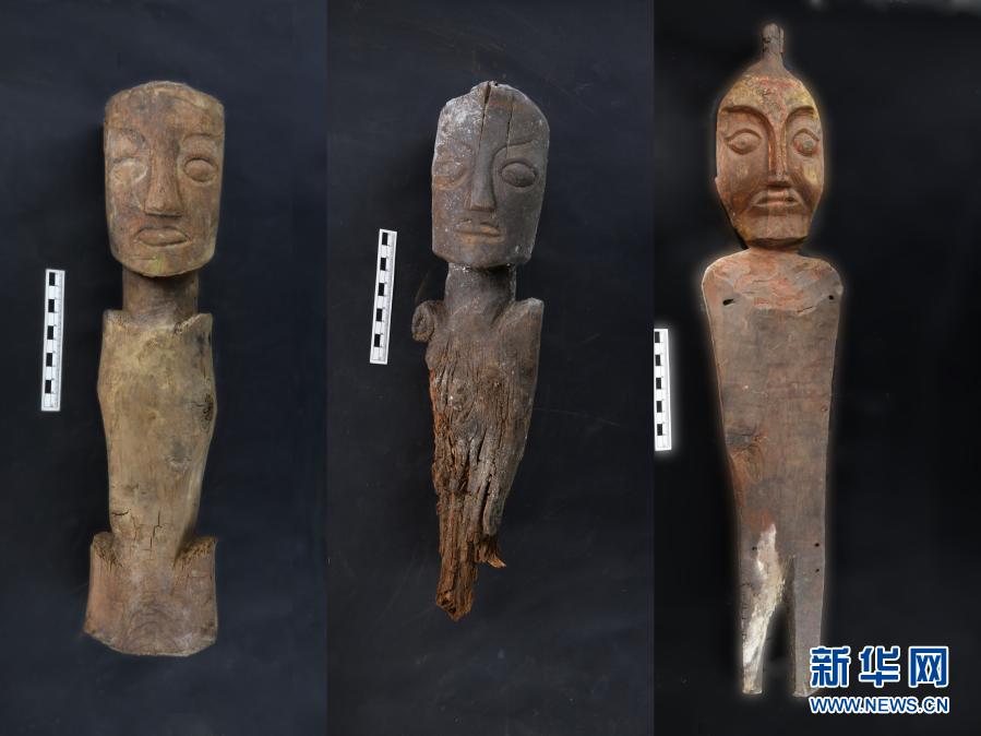 桑達隆果墓地出土的木俑(資料照片)。新華社發(fā)