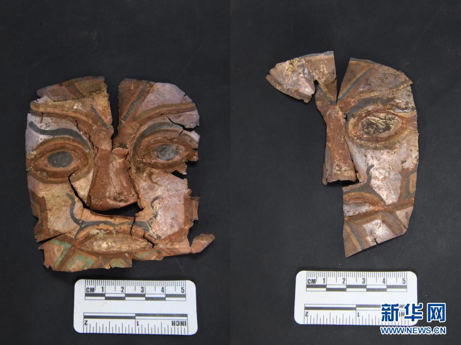 桑達隆果墓地出土的面飾(資料照片)。新華社發(fā)
