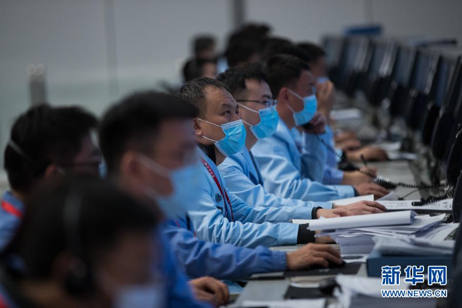 12月6日,航天科技人員在北京航天飛行控制中心指揮大廳監(jiān)測嫦娥五號上升器與軌道器返回器組合體交會(huì)對接情況。