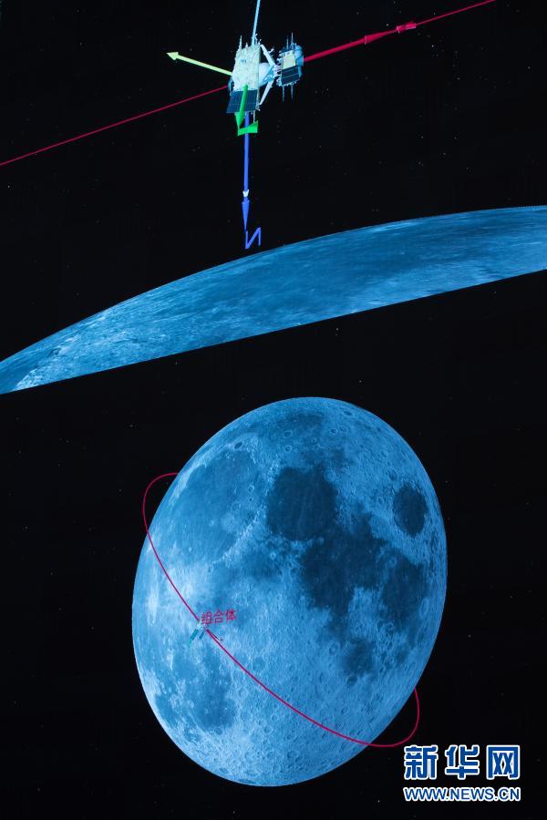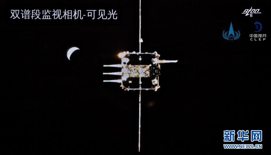 這是嫦娥五號上升器與軌道器返回器組合體完成交會對接畫面。新華社發(fā)(國家航天局供圖)