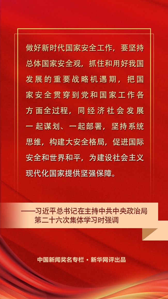 習近平在中央政治局第二十六次集體學習時強調(diào) 堅持系統(tǒng)思維構(gòu)建大安全格局 為建設(shè)社會主義現(xiàn)代化國家提供堅強保障