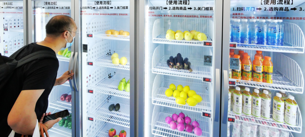 8月3日,廣州,智能零售、生鮮科技設(shè)備展上生鮮無(wú)人設(shè)備