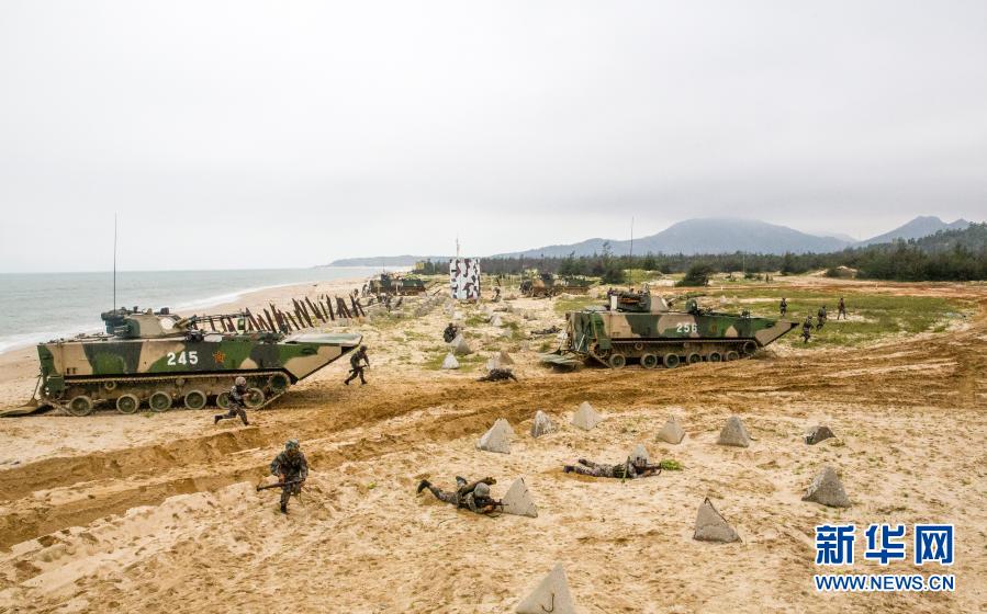 陸軍第72集團軍某旅組織海上駕駛訓(xùn)練,戰(zhàn)車按協(xié)同隊形依次駛上海軍登陸艦(2018年8月16日攝,無人機照片)。新華社發(fā)(莊林毅 攝)