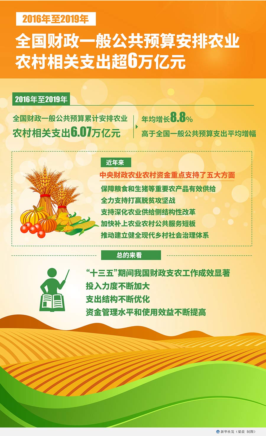 新華社北京12月23日電(記者申鋮)財政部部長劉昆23日表示,2016年至2019年,全國財政一般公共預算累計安排農(nóng)業(yè)農(nóng)村相關支出6.07萬億元,年均增長8.8%,高于全國一般公共預算支出平均增幅。