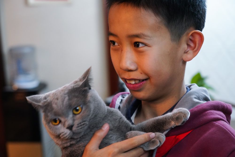 ??12月21日,蔡昊霖在家中與寵物貓玩耍。
