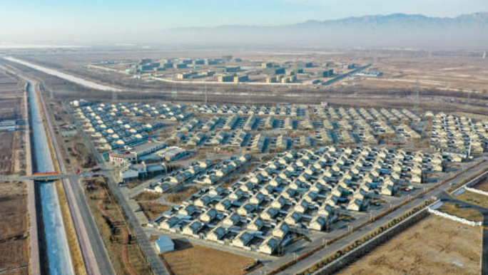 銀川市潤豐村全景(無人機照片,12月31日攝)。新華社記者 馮開華 攝