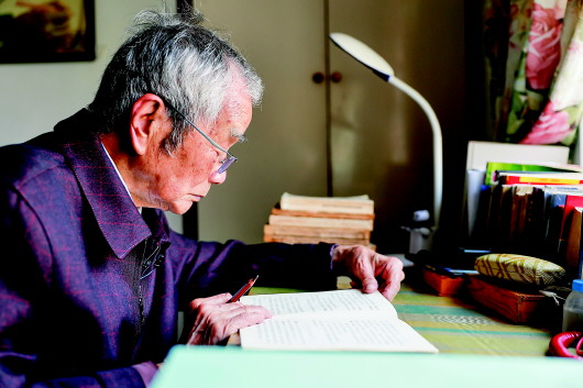 4月30日,金平在位于西南政法大學(xué)沙坪壩校區(qū)的家中伏案工作。本報(bào)記者黃偉攝