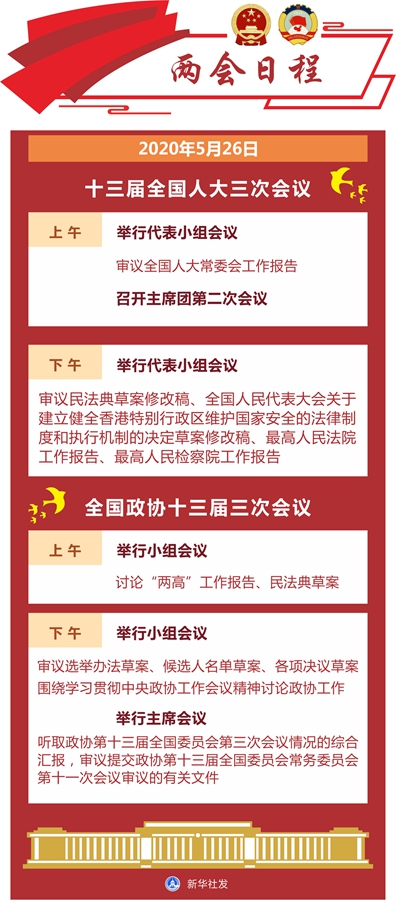 圖表:5月26日兩會(huì)日程 新華社發(fā)