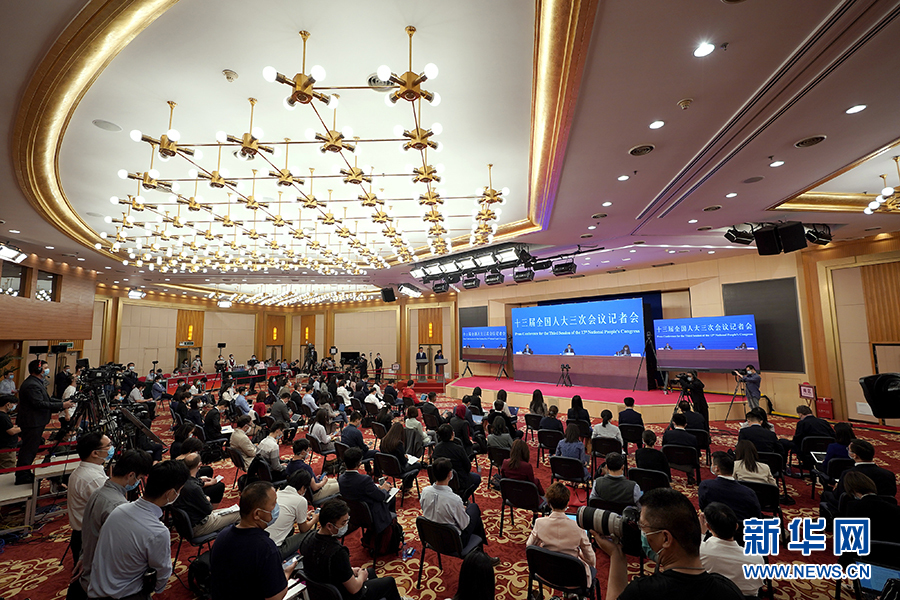 5月28日,國務(wù)院總理李克強在北京人民大會堂出席記者會并回答中外記者提問。這是記者在梅地亞中心多功能廳采訪。 新華社記者 劉金海 攝
