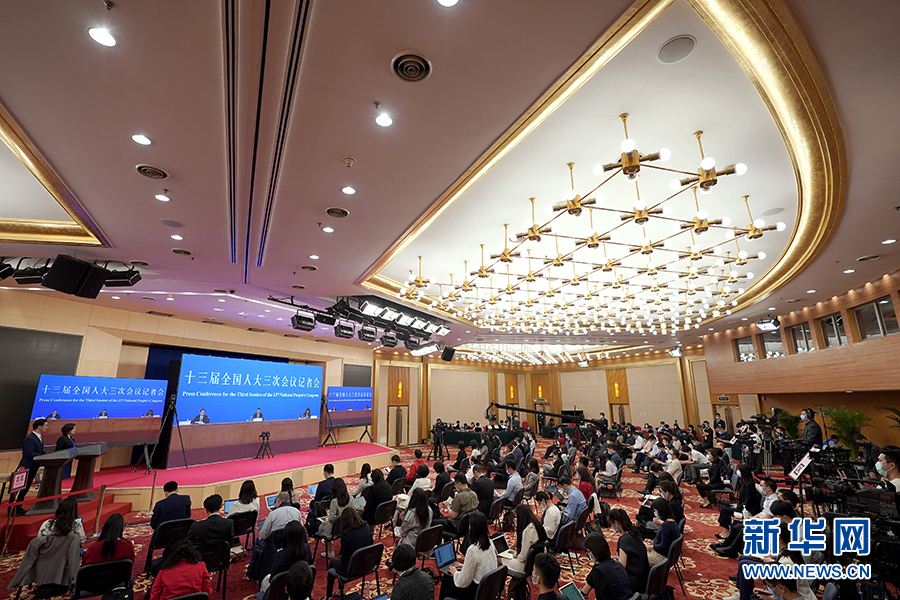 5月28日,國(guó)務(wù)院總理李克強(qiáng)在北京人民大會(huì)堂出席記者會(huì)并回答中外記者提問。這是記者在梅地亞中心多功能廳采訪。 新華社記者 劉金海 攝