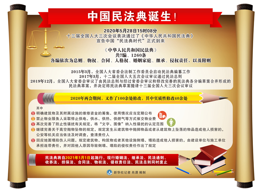 新華社北京5月28日電(記者羅沙、楊維漢)“通過!”2020年5月28日15時08分,十三屆全國人大三次會議表決通過了《中華人民共和國民法典》,宣告中國“民法典時代”正式到來。