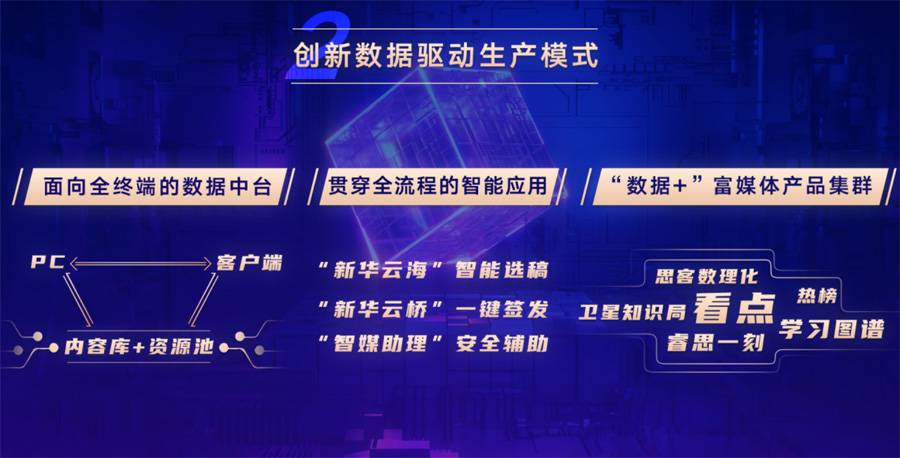 再造升級后的新華網(wǎng)突出“技術(shù)引領(lǐng)”,以“數(shù)據(jù)”為核心生產(chǎn)要素,為內(nèi)容制作、聚合分發(fā)、用戶運營等提供全流程支撐,實現(xiàn)生產(chǎn)模式“由外而內(nèi)”的變革。