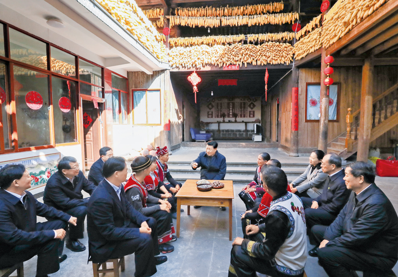 2020年1月19日至21日,中共中央總書記、國家主席、中央軍委主席習(xí)近平來到云南,看望慰問各族干部群眾,向全國人民致以新春祝福。這是19日下午,習(xí)近平在騰沖市清水鄉(xiāng)三家村中寨司莫拉佤族村,同村民李發(fā)順一家聊家常,詳細(xì)詢問脫貧情況。 新華社記者 鞠鵬/攝