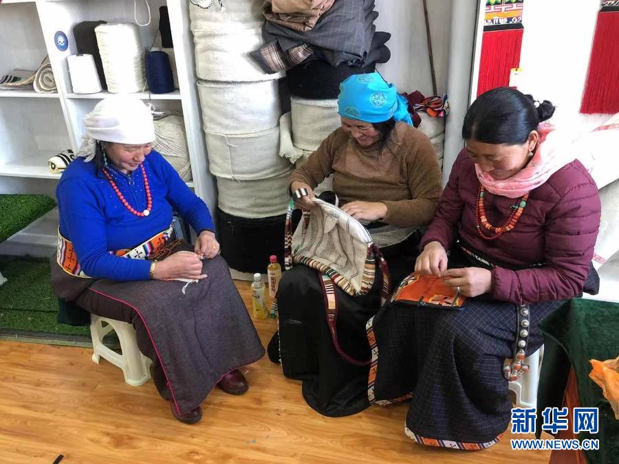 在青海省果洛藏族自治州瑪沁縣的扶貧產(chǎn)業(yè)孵化園內(nèi),贊根村村民在制作手工藝品(2020年11月9日攝)。新華社發(fā)