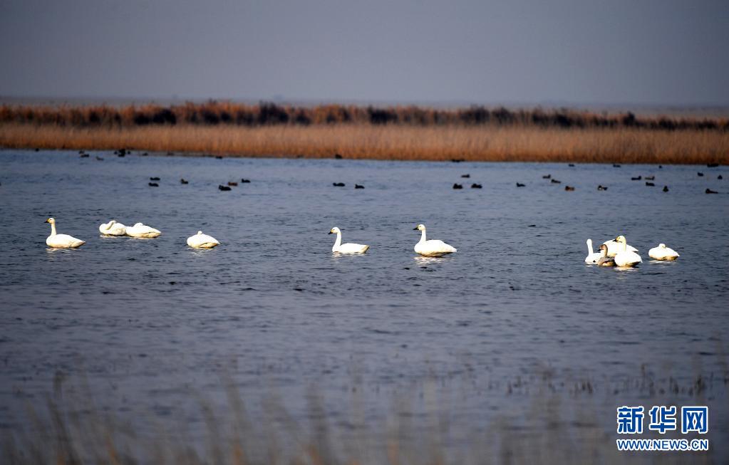 2020年11月12日,天鵝在天津北大港濕地自然保護區(qū)棲息。新華社記者趙子碩 攝