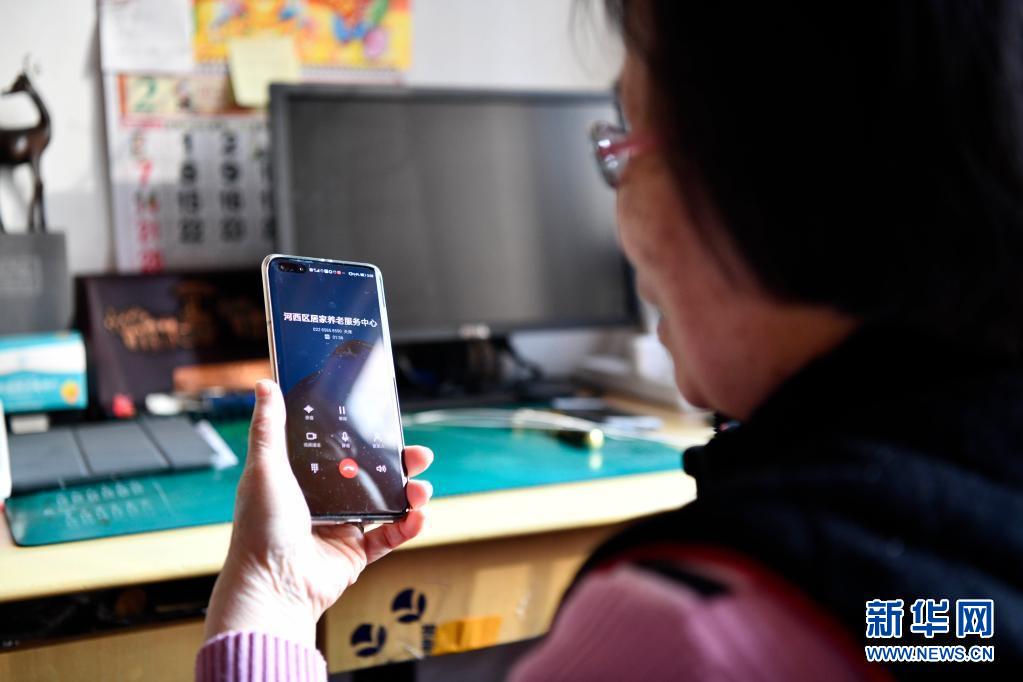 家住天津市河西區(qū)桃園街道的獨居老人在體驗居家養(yǎng)老服務的智能外呼系統(tǒng)(2月9日攝)。新華社記者 趙子碩 攝