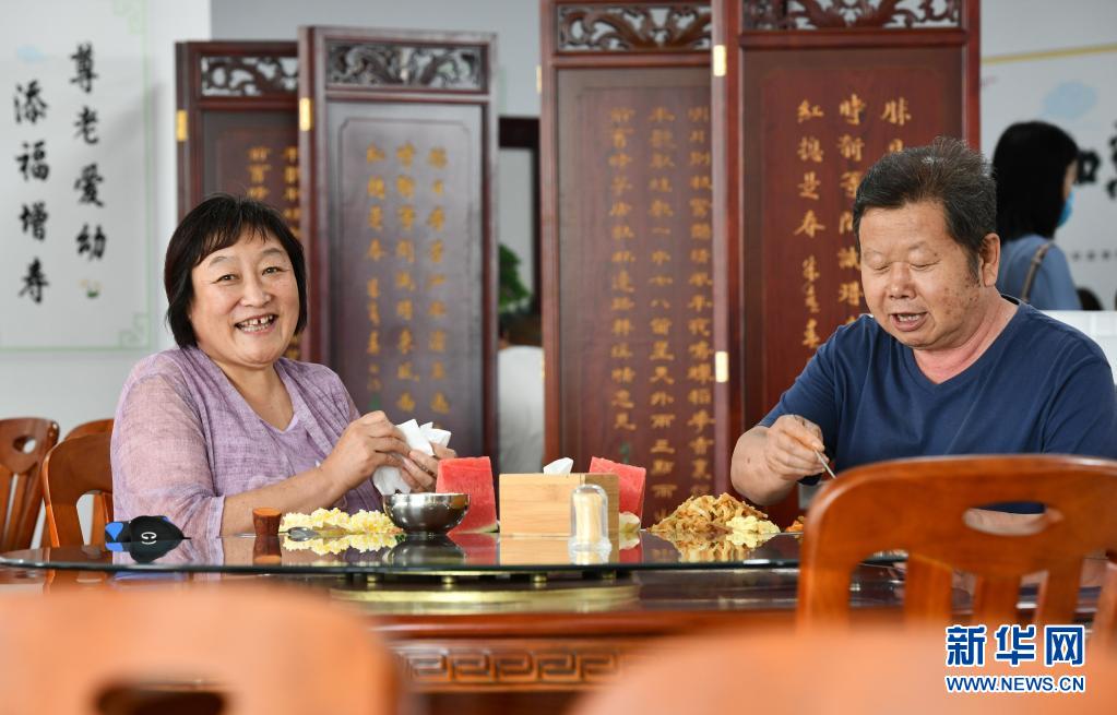 2020年7月7日,老人在付村康養(yǎng)中心(老人家食堂)準備用餐。新華社記者李然 攝