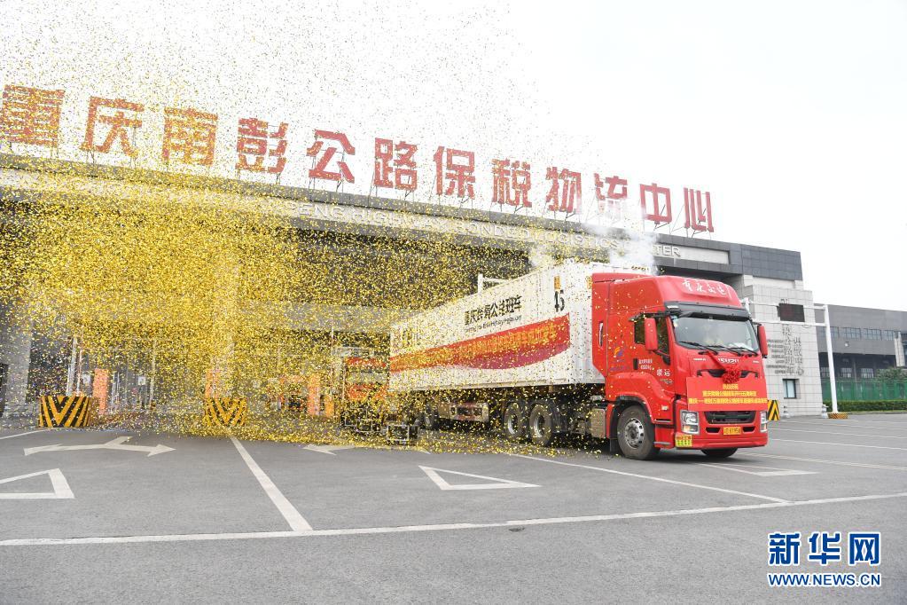 在重慶南彭公路保稅物流中心,重慶至老撾萬象跨境公路班車直通車發(fā)車(4月28日攝)。新華社記者 唐奕 攝