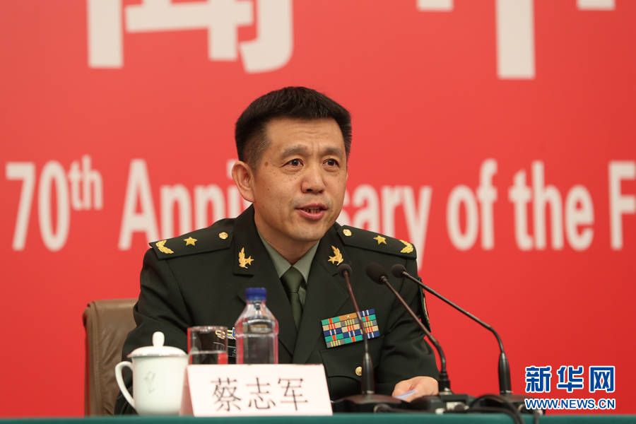 9月24日,慶祝中華人民共和國(guó)成立70周年活動(dòng)新聞中心在北京梅地亞中心二層新聞發(fā)布廳舉辦第一場(chǎng)專題集體采訪。圖為閱兵領(lǐng)導(dǎo)小組辦公室副主任、中央軍委聯(lián)合參謀部作戰(zhàn)局副局長(zhǎng)蔡志軍少將介紹相關(guān)情況。新華網(wǎng)記者 郭小天 攝