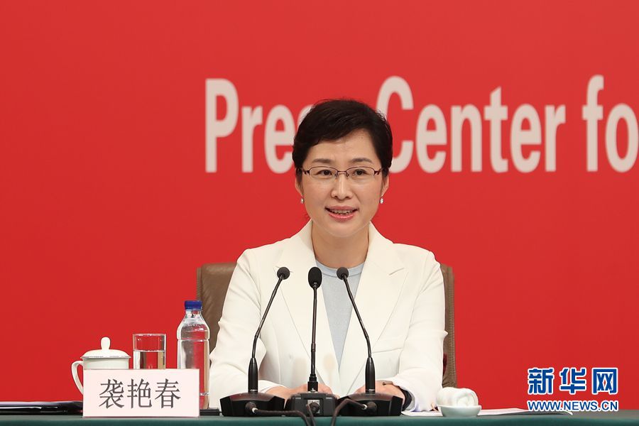 9月26日,慶祝中華人民共和國成立70周年活動新聞中心在北京梅地亞中心二層新聞發(fā)布廳舉辦第二場新聞發(fā)布會。圖為慶祝中華人民共和國成立70周年活動新聞中心負(fù)責(zé)人襲艷春。新華網(wǎng)記者 郭小天 攝