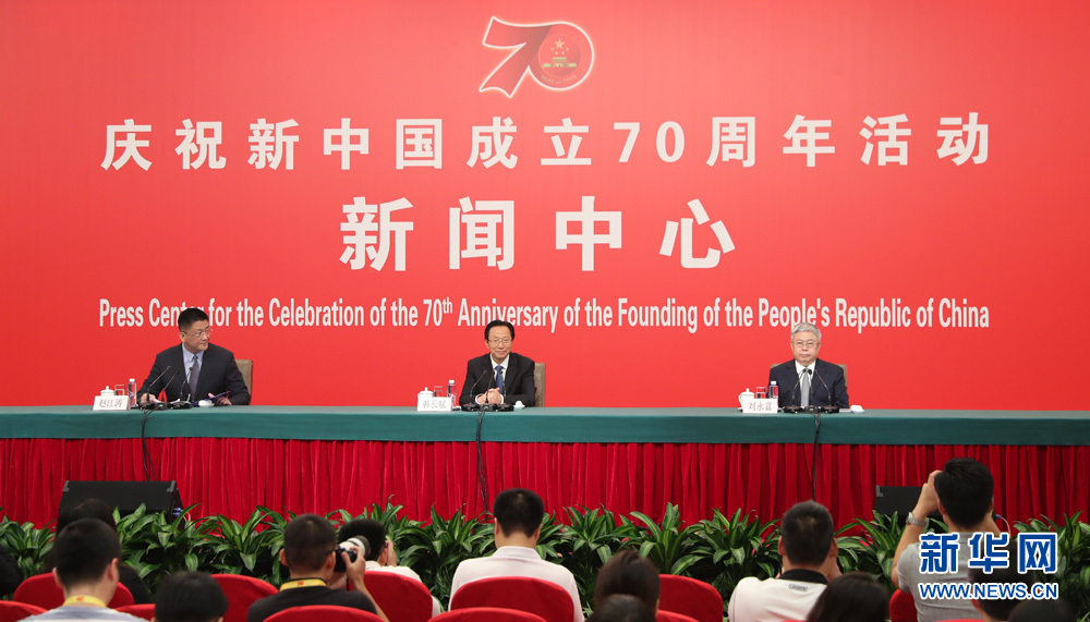 9月27日,慶祝中華人民共和國(guó)成立70周年活動(dòng)新聞中心在梅地亞中心二層新聞發(fā)布廳舉辦第三場(chǎng)新聞發(fā)布會(huì),中央農(nóng)村工作領(lǐng)導(dǎo)小組辦公室主任、農(nóng)業(yè)農(nóng)村部部長(zhǎng)韓長(zhǎng)賦,國(guó)務(wù)院扶貧開(kāi)發(fā)領(lǐng)導(dǎo)小組辦公室主任劉永富介紹全面建成小康社會(huì),扎實(shí)推進(jìn)脫貧攻堅(jiān)和鄉(xiāng)村振興,并回答記者提問(wèn)。圖為發(fā)布會(huì)現(xiàn)場(chǎng)。新華網(wǎng) 陳杰 攝