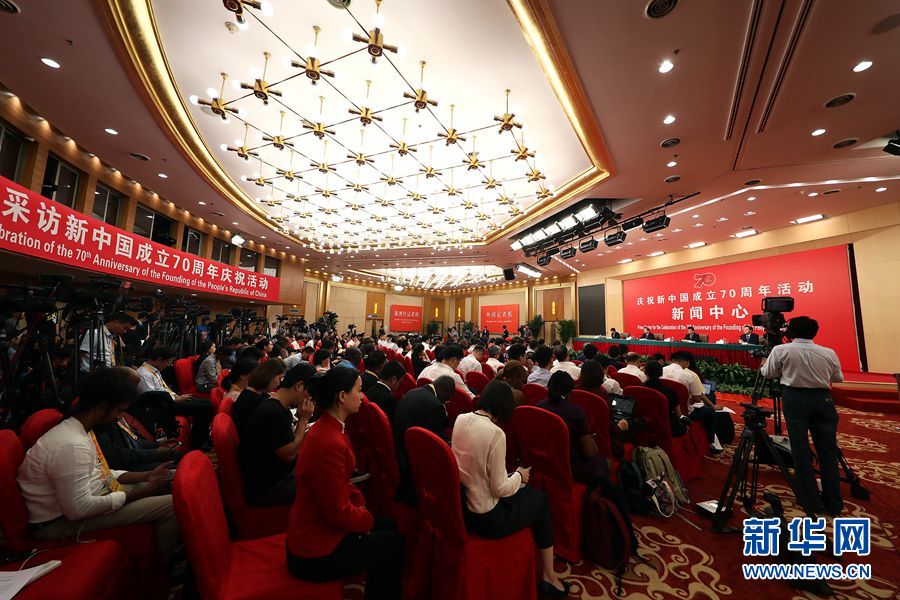 9月29日,慶祝中華人民共和國成立70周年活動新聞中心在北京梅地亞中心二層新聞發(fā)布廳舉辦第四場新聞發(fā)布會。圖為新聞發(fā)布會現(xiàn)場。新華網(wǎng)記者 焦鵬 攝