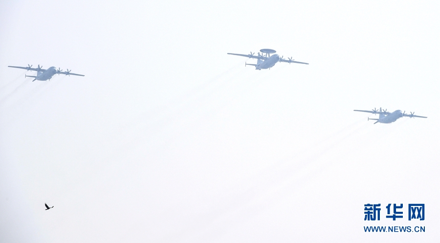 新華社北京10月1日電(黃書波、周正新)空警-500H預(yù)警機(jī)、空警-200H預(yù)警機(jī)、運(yùn)-8反潛巡邏機(jī)、運(yùn)-8技術(shù)偵察機(jī)組成的海上巡邏機(jī)梯隊(duì),1日上午飛過(guò)天安門廣場(chǎng)上空,作為海軍新型信息作戰(zhàn)力量的4型特種機(jī)首次集體亮相。