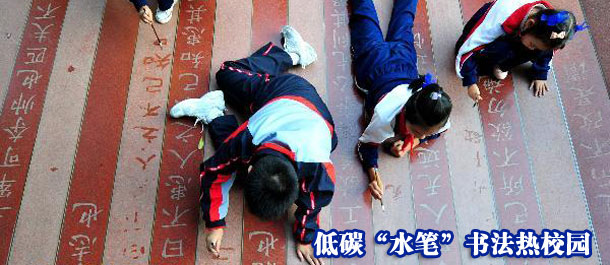 低碳“水筆”書法熱校園