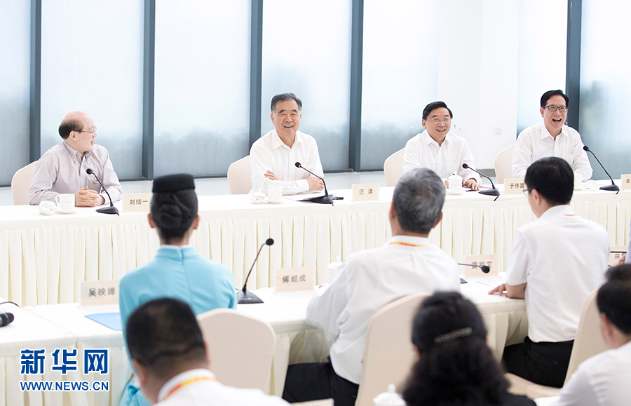 6月6日至7日,中共中央政治局常委、全國政協(xié)主席汪洋在廈門出席第十屆海峽論壇期間,就兩岸經濟文化交流合作情況進行調研。這是6月6日,汪洋與在閩工作的臺灣同胞代表座談。新華社記者 王曄 攝