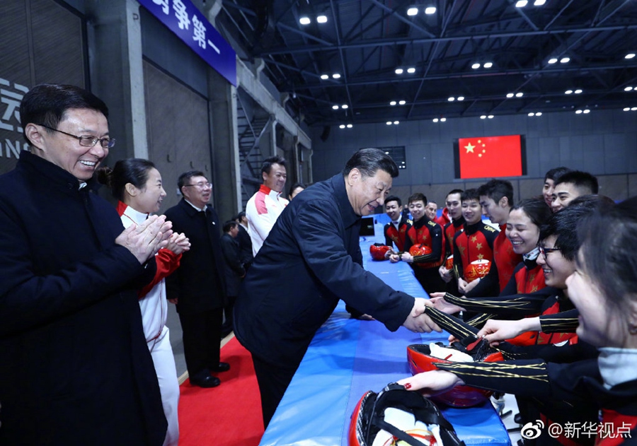 在位于北京石景山首鋼園區(qū)的國家冬季運動訓練中心,習近平先后走進速滑館和冰壺館,看望慰問備戰(zhàn)的運動員、教練員?!坝柧殢姸却蟛淮??”“從事這項運動多長時間啦?”“生活上有哪些困難?”“國際上哪些競爭對手最強?”總書記問得仔細。得知運動員們充滿信心,總書記十分欣慰。他勉勵大家說,舉辦北京冬奧會、冬殘奧會,中國冰雪運動將會上一個大臺階。這是百年不遇的歷史機遇,會應運而生一批高水平優(yōu)秀運動員。習近平強調,體育強則國家強,國家強則體育強。通過北京冬奧會把我國冬季冰雪運動發(fā)展起來,這就是我們的希望。(記者張曉松、鞠鵬、謝環(huán)馳、劉彬)?