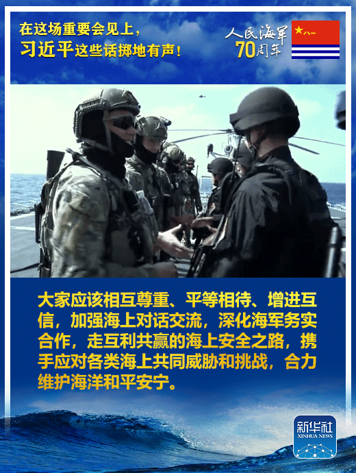國家主席、中央軍委主席習(xí)近平23日上午在青島集體會見了應(yīng)邀出席中國人民解放軍海軍成立70周年多國海軍活動的外方代表團(tuán)團(tuán)長,代表中國政府和軍隊向出席活動的各國海軍官兵表示熱烈歡迎。