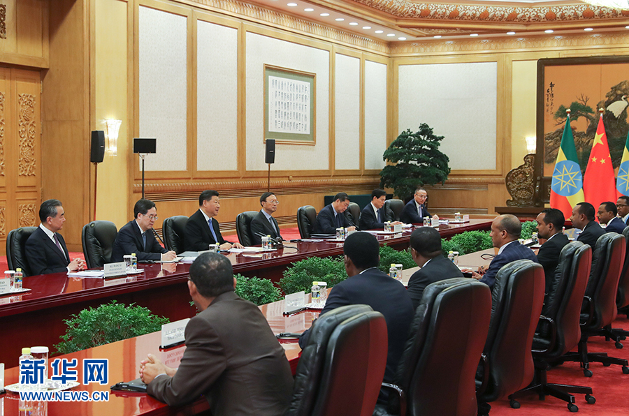 4月24日,國家主席習(xí)近平在北京人民大會(huì)堂會(huì)見埃塞俄比亞總理阿比。 新華社記者 丁林 攝