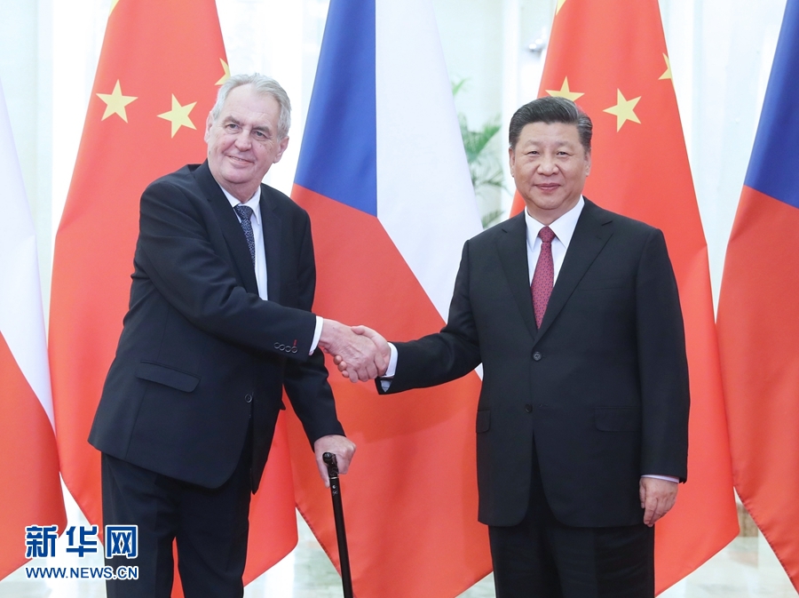 4月28日,國家主席習(xí)近平在北京人民大會(huì)堂會(huì)見捷克總統(tǒng)澤曼。 新華社記者 翟健嵐 攝
