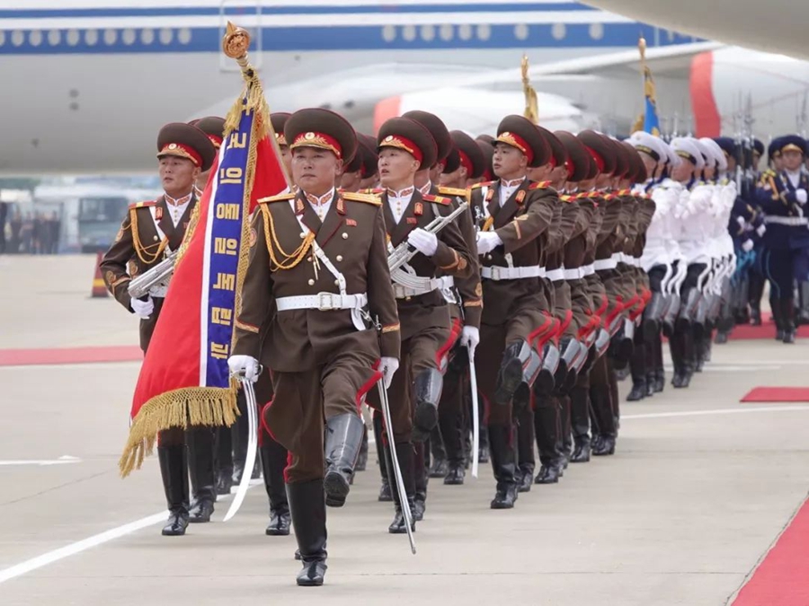 朝方在機(jī)場舉行隆重歡迎儀式。
