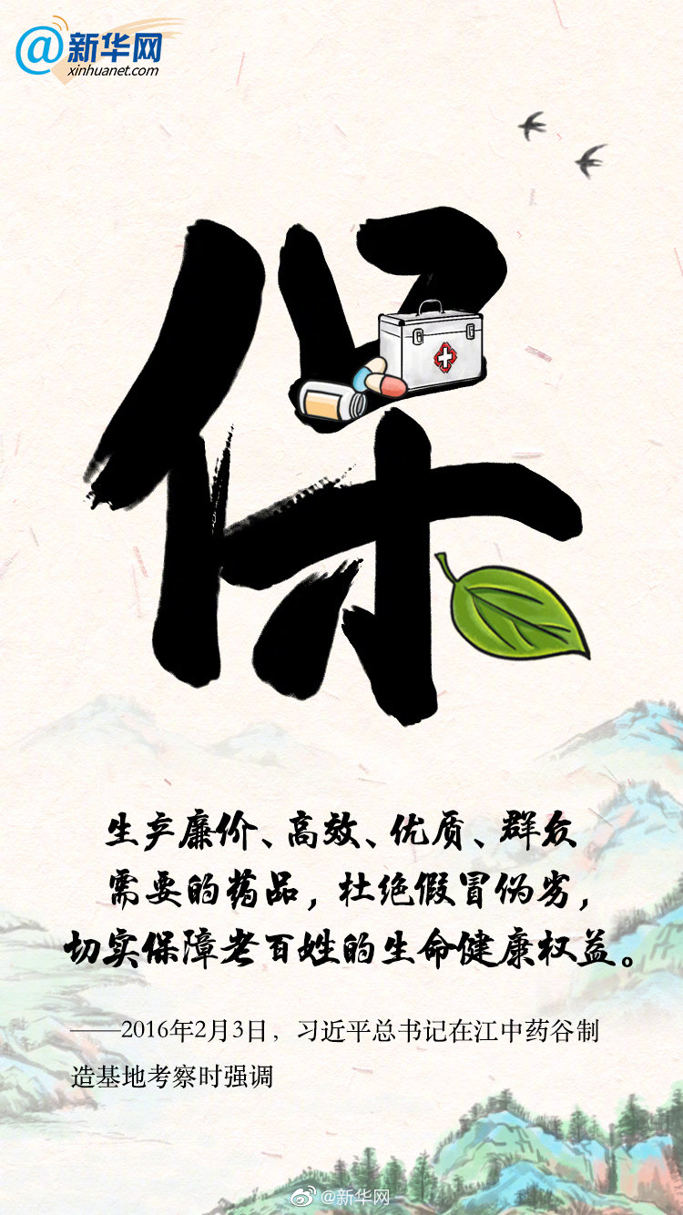 2016年2月3日,習(xí)近平總書記在江中藥谷制造基地考察時(shí)強(qiáng)調(diào),醫(yī)療保健是全面建成小康社會(huì)的重要方面,要下大氣力抓好,生產(chǎn)廉價(jià)、高效、優(yōu)質(zhì)、群眾需要的藥品,杜絕假冒偽劣,切實(shí)保障老百姓的生命健康權(quán)益。