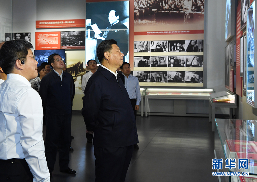 9月12日,中共中央總書(shū)記、國(guó)家主席、中央軍委主席習(xí)近平視察中共中央北京香山革命紀(jì)念地。這是習(xí)近平在香山革命紀(jì)念館參觀《為新中國(guó)奠基》主題展覽,并發(fā)表重要講話。 新華社記者 黃敬文 攝