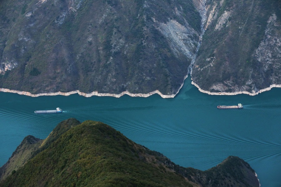 貨輪行駛在重慶巫山縣境內(nèi)的長(zhǎng)江巫峽段江面上。
