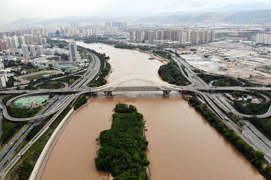 黃河蘭州段的深安黃河大橋。