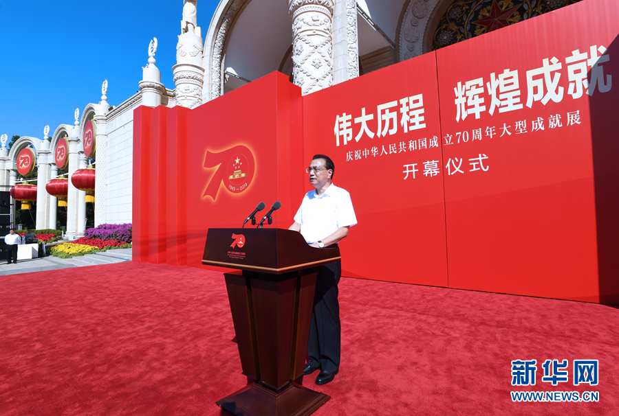 9月23日,“偉大歷程 輝煌成就——慶祝中華人民共和國(guó)成立70周年大型成就展”開幕式在北京展覽館舉行。中共中央政治局常委、國(guó)務(wù)院總理李克強(qiáng)出席開幕式并講話。 新華社記者 饒愛(ài)民 攝
