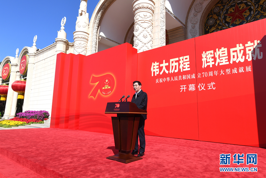 9月23日,“偉大歷程 輝煌成就——慶祝中華人民共和國(guó)成立70周年大型成就展”開幕式在北京展覽館舉行。中共中央政治局常委、中央書記處書記王滬寧主持開幕式并宣布成就展開幕。 新華社記者 饒愛(ài)民 攝