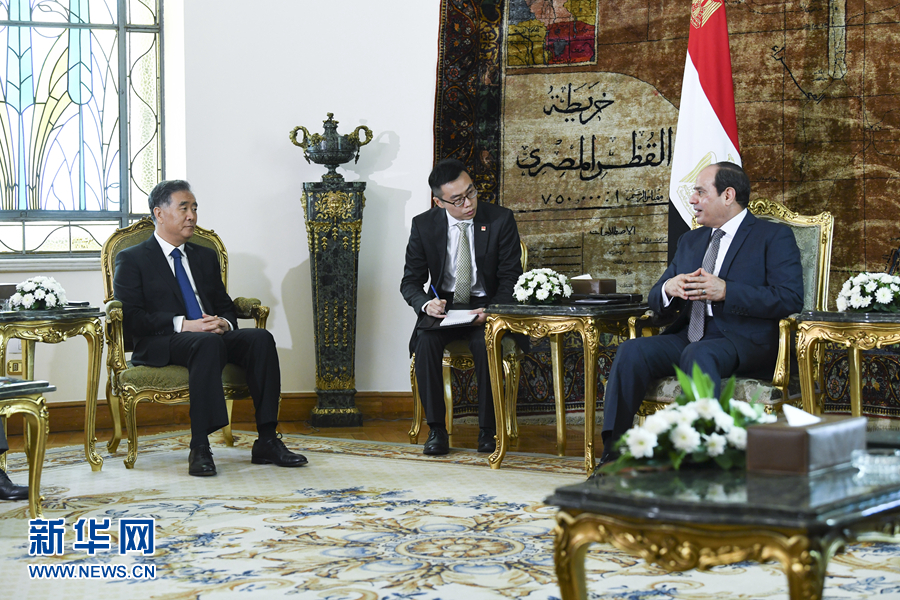 會見塞西時,汪洋轉(zhuǎn)達(dá)了習(xí)近平主席的親切問候和良好祝愿。汪洋說,在兩國元首共同引領(lǐng)下,中埃關(guān)系實現(xiàn)了歷史性發(fā)展。中方愿與埃方密切高層交往,深化政治互信,積極推進(jìn)“一帶一路”框架下的務(wù)實合作,擴大國際和地區(qū)事務(wù)協(xié)調(diào)配合,加強反恐領(lǐng)域合作,推動中埃全面戰(zhàn)略伙伴關(guān)系取得更大發(fā)展。剛剛閉幕的中共十九屆四中全會為我們推進(jìn)國家治理體系和治理能力現(xiàn)代化、實現(xiàn)民族復(fù)興構(gòu)筑了可靠的制度大廈,為人類制度文明貢獻(xiàn)了中國智慧和中國方案。中方愿與埃方加強治國理政經(jīng)驗交流,支持埃方走符合本國國情的發(fā)展道路。