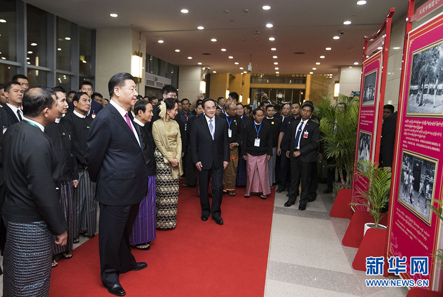 當(dāng)晚,習(xí)近平同緬甸聯(lián)邦議會(huì)議長(zhǎng)兼人民院議長(zhǎng)蒂昆密和民族院議長(zhǎng)曼溫凱丹進(jìn)行了友好交談,并和緬甸主要政黨領(lǐng)導(dǎo)人集體合影留念。