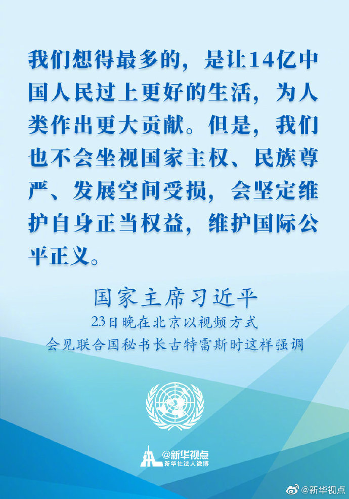 國家主席習(xí)近平23日晚在北京以視頻方式會(huì)見聯(lián)合國秘書長古特雷斯時(shí)講話的金句