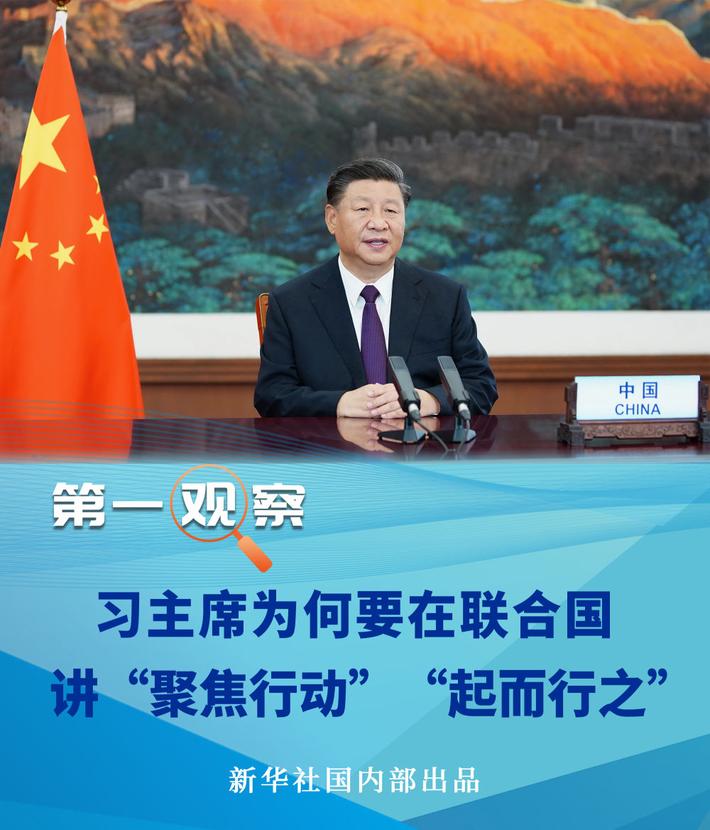 21日,在聯(lián)合國成立75周年紀(jì)念峰會上,習(xí)近平主席就聯(lián)合國如何發(fā)揮作用提出四點建議,其中點出“聚焦行動”這一關(guān)鍵詞,強調(diào)“不能只開藥方,不見療效”。
