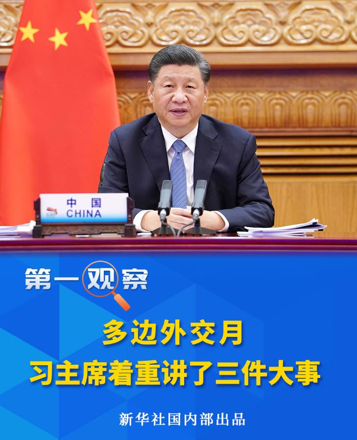 繼9月底10月初出席聯(lián)合國成立75周年系列活動,11月10日至22日,習近平主席又以視頻方式接連出席了上合、金磚、APEC、G20四大多邊平臺的一系列重大外交活動。