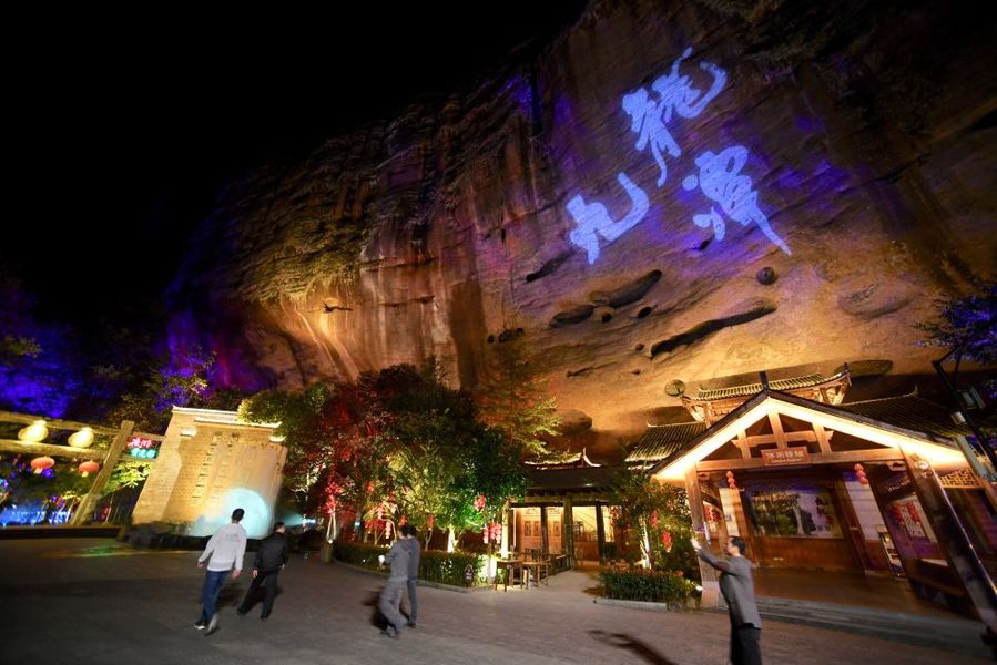 游客前往福建省泰寧縣九龍?zhí)毒皡^(qū)體驗(yàn)夜游九龍?zhí)堵糜雾?xiàng)目(11月19日攝)。新華社記者 姜克紅 攝