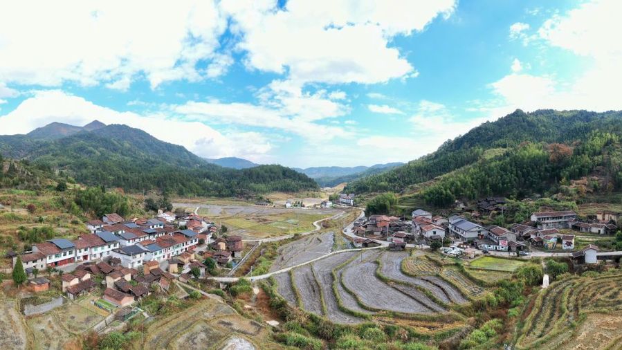 這是11月19日拍攝的大山之中的嶺下村(無(wú)人機(jī)照片)。新華社記者 姜克紅 攝