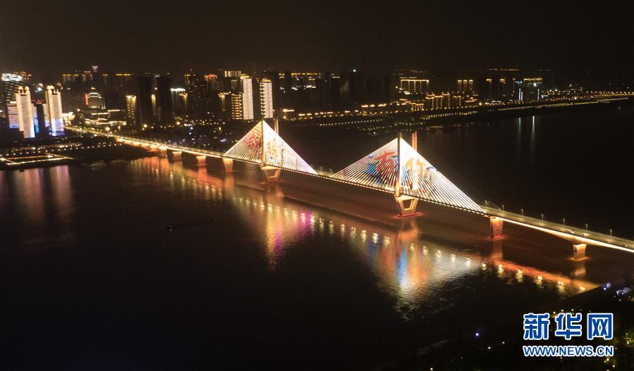 4月8日零時(shí)起,武漢市正式解除離漢離鄂通道管控措施,全市景觀照明開(kāi)啟(無(wú)人機(jī)照片)。新華社記者 程敏 攝